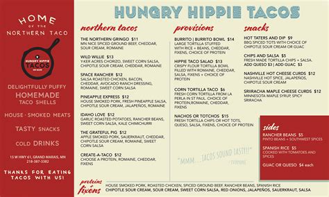 - Fresh and Flavorful Ingredients: Each taco at Hungry Hippie Tacos is made using fresh and locally sourced ingredients, ensuring the highest quality and a burst of flavor in every bite.