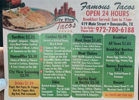 So, what are you waiting for? Grab your friends, family, or even just yourself, and head on over to City View Tacos. Prepare for a culinary adventure that will leave you craving more. Don't forget to try their signature tacos, savor the homemade salsas, and wash it all down with one of their refreshing margaritas. Trust us, you won't be disappointed!