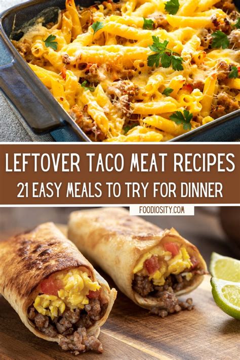 Let's start with the obvious – reinventing tacos themselves. Instead of having the same old tacos, why not mix things up a bit? You can transform your leftover taco meat into a whole new taco experience by adding different toppings and fillings. Try adding some diced tomatoes, shredded lettuce, and a dollop of sour cream to your leftover meat. Alternatively, you could melt some cheese on top of the meat and garnish it with chopped cilantro and a squeeze of lime. These simple additions will elevate your leftover taco meat into a gourmet taco feast!