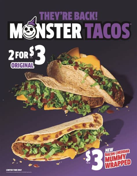In conclusion, Monster Tacos at Jack In The Box are a treat for any taco enthusiast. From their monster-sized portions to their incredible flavor, these tacos are a must-try for anyone looking to indulge in a truly satisfying meal. So, next time you find yourself near a Jack In The Box, don't hesitate to swing by and give these monsters a try. Your taste buds will thank you!