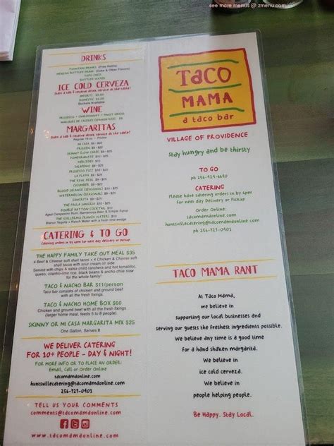 Taco Mamas is a popular Mexican restaurant chain known for its delicious and authentic Mexican cuisine. The menu at Taco Mamas offers a wide variety of options, from traditional tacos and burritos to unique and innovative dishes that cater to every taste bud. With a focus on using fresh and high-quality ingredients, Taco Mamas ensures that each dish is bursting with flavor and satisfaction.