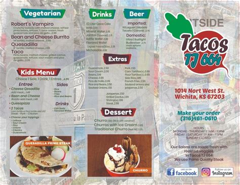So there you have it, folks! Tacos Tj 664 Menu is a culinary gem that deserves a spot on every food lover's must-try list. With its diverse menu, exceptional quality, and inviting atmosphere, this taco joint is sure to satisfy your cravings and leave you with a smile on your face. So don't wait any longer – go ahead and embark on your own flavor-filled adventure at Tacos Tj 664. Buen provecho!